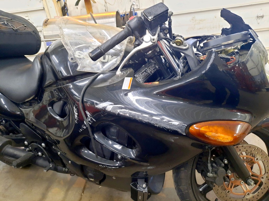 I may have had a motorcycle accident. It is a long story, and I did a write-up about it you can read if you click here. The short story: I was driving on a Sunday afternoon when Maria was in PA, and a car didn’t see me and turned into my lane of travel. I got knocked out and rushed to the ER. Praise God I only broke a wrist, had a concussion, and banged up my knee bad. I am better now, but please pray I get full wrist movement back.