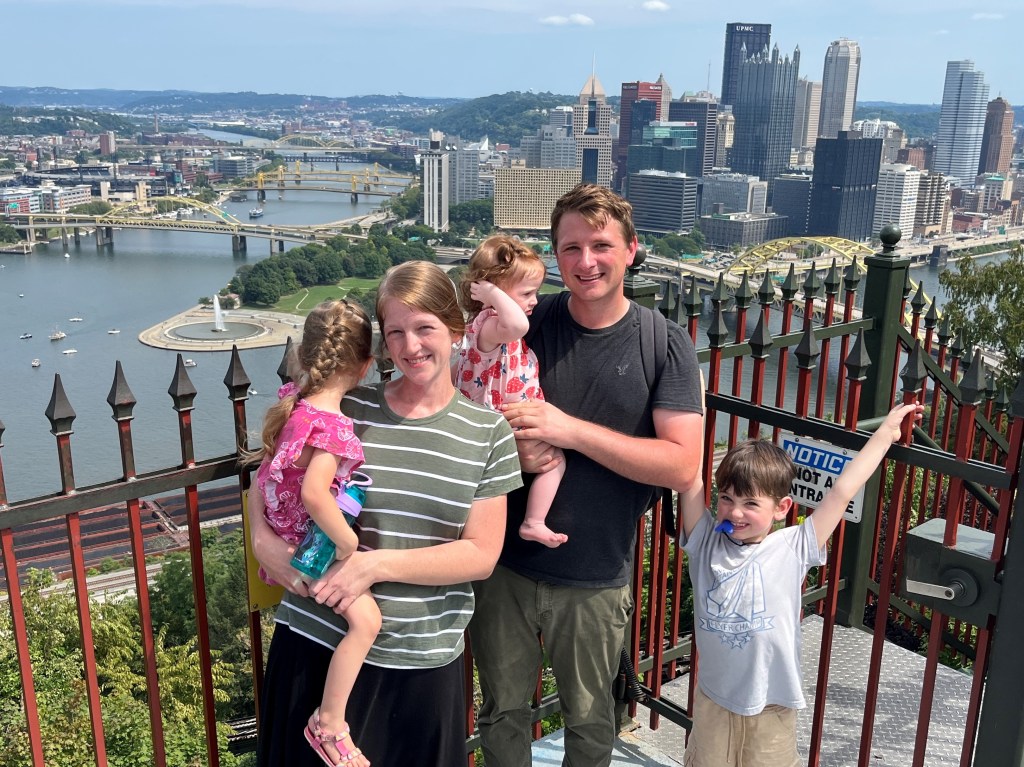 On Labor Day we visited the Pittsburgh children’s museum. It was a super fun place with all types of interesting activities for the children. There were ropes attached to a stand that if you pulled just right, would make projected kites fly on the ceiling. There was a water room with all matter of water toys and a big table of ice shavings that Evelyn mostly just ate.
